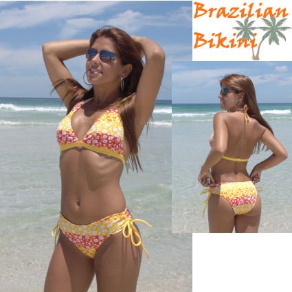 Tribal Spice Orange Yellow Floral Brazilian Bathing Suit Bikini By Cabo Beachwear Swimwear